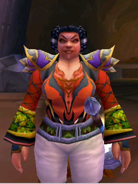 基於維護大家往後食慾,以及聯邦資訊保護法案(真是鬼扯),我不能隨意公佈被害人…不,是當事者的照片,但我和另外幾位同事都覺得,對這位身高未滿160,體重疑似超過60的婦人來說,金剛芭比這個稱呼真的比較適合她。我試圖找出相近的漫畫人物代表,但實在很困難,後來發現也許我在魔獸世界裡面的矮人牧角色可以有50%以上的相似度,請看右圖所示。